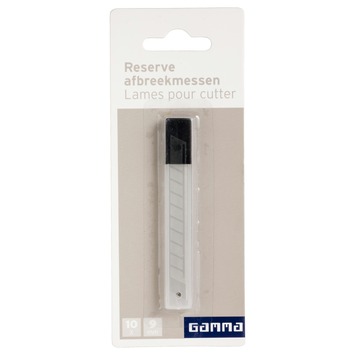 Deze reservemessen zijn geschikt voor het GAMMA afbreekmes van 9 mm. Is er een mesje afgebroken of wilt u hem net iets scherper. Gebruik dan deze vervangingsmessen. Verpakt per 10 stuks.