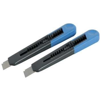 De set afbreekmessen bestaat uit 2 stuks afbreekmessen van 18mm. De messen zijn gemaakt van sterk kunststof. Hierdoor zijn de messen stevig en multifunctioneel te gebruiken, bijvoorbeeld als stanleymes. Beide afbreekmessen zijn voorzien van een afneembare eindkap. Hiermee breekt u het versleten gedeelte van de mesjes makkelijk af. De 2 afbreekmessen van de set hebben een mesbreedte van 18mm. De messen kunnen op elke gewenste lengte worden vastgezet. Moet u de mesjes vervangen? In GAMMA’s assortiment vindt u bijbehorende vervangende reservemesjes.