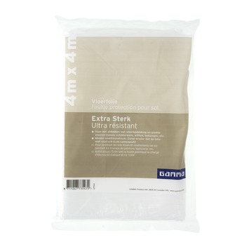De GAMMA afdekfolie 4x4m extra sterk is een afdekfolie van het GAMMA eigen merk. De afdekfolie is geschikt voor het afdekken van bijvoorbeeld vloerbedekking, houten vloeren of gladde vloeren. Zo blijven uw vloeren beschermd wanneer u gaat schilderen, witten, behangen of klussen. De folie is minder elektrostatisch wat ervoor zorgt dat de afdekfolie niet samenplakt. Dankzij het compacte formaat kunt u de folie efficiënt op de vloer plaatsen. Bovendien is de folie extra sterk, waardoor deze minder snel beschadigd of scheurt. Afmeting: 4x4m.