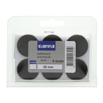 Voor het beschermen van je vloer en meubilair is het gebruik van de GAMMA anti-krasvilt aan te raden. Het anti-krasvilt voorkomt beschadigingen aan je vloer tijdens het verplaatsen van meubels. Ook zorgt het ervoor dat het geluid wordt gedempt tijdens het verschuiven van je meubels. Het heeft een bruine kleur en een doorsnede van 28 mm. Het anti-krasvilt heeft een ronde vorm. Het wordt verzonden in sets van 9.