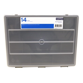 De GAMMA assortimentsdoos 14-vaks is een assortimentsdoos met 14 vaste vakken. De doos is bij uitstek geschikt om kleine materialen in op te bergen. Bovendien kunt u dankzij de 14 vakken uw materialen overzichtelijk sorteren. De stevige, lichtgewicht doos is uitgerust met een transparant deksel, zodat u direct de inhoud kunt zien. Kortom, met de GAMMA assortimentsdoos kunt u uw spullen netjes opbergen en vindt u voortaan meteen de materialen die u nodig heeft.