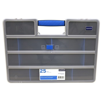 De GAMMA assortimentsdoos 25-vaks is een handige organizer. Dankzij de uitneembare scheidingen zijn er tot wel 1024 configuraties mogelijk. De doos is handig om gereedschappen en kleine onderdelen in op te bergen. U kunt er zelfs uw hamers in kwijt. De assortimentsdoos is uitgerust met een goed vergrendelbaar deksel. Dankzij de dekselstructuur blijven alle kleine onderdelen op hun plaats, ook wanneer u de doos onderweg meeneemt.