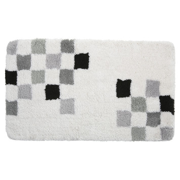 De GAMMA Badmat Mitch Wit 60x90 cm is een badmat van het GAMMA eigen merk. De badmat is gemaakt van zacht synthetisch textiel (soft polyester-acryl) en voorzien van een anti-slip laag, waardoor de mat comfortabel aanvoelt en goed op zijn plek blijft liggen. Dankzij deze badmat stap je comfortabel in en uit zowel douche als bad. Bovendien voorziet de decor mat je badkamer van een mooie look. De mat is geschikt voor vloeren met vloerverwarming. Wassen op 30°C, drogen in de open lucht. Kleur: wit/geblokt.