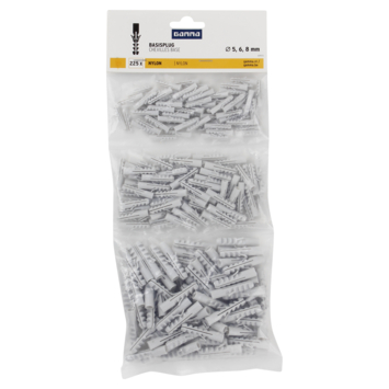 Pluggen nodig voor het bevestigen van objecten aan een muur? GAMMA Basisplug nylon Ø 5, 6 en 8mm voordeelpak bevat maar liefst 225 stuks pluggen voor universeel gebruik. De pluggen zijn geschikt voor bevestiging in beton en massieve steen. Let op dat u het boorgat in de juiste grootte maakt. Hierbij kunt u ervan uitgaan dat het boorgat even groot moet zijn als de diameter van de plug. In dit voordeelpak met grijze pluggen zitten pluggen met verschillende afmetingen: 5, 6 and 8mm. De grote pluggen kunnen meer belast worden dan de kleine pluggen. De pluggen in deze voordeelverpakking met 225 pluggen is gemaakt van nylon.