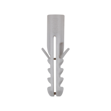 De GAMMA Basisplug nylon Ø 6mm, de meest gebruikte plug voor toepassing in massieve bouwmaterialen, zoals beton en massieve steen. U koopt de basisplug per 300 stuks. De basisplug is 30mm lang en heeft diepe vertanding. Zo bevestigt u met deze plug middelzware materialen aan muren en wanden, bijvoorbeeld schilderijen, plinten en legplanken. De Wij adviseren een schroef van tussen 3,5 en 5mm te gebruiken met een lengte van 35mm. Als minimale boordiepte adviseren wij 35mm aan te houden.