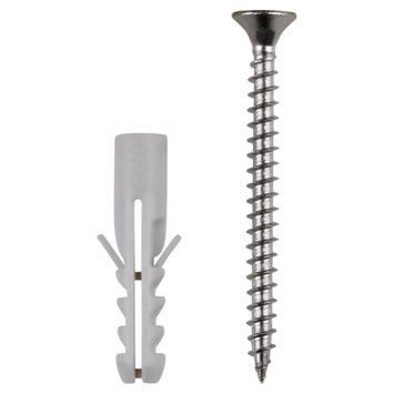 De GAMMA Basisplug nylon Ø 6mm met schroef RVS, de meest gebruikte plug voor toepassing in massieve bouwmaterialen, zoals beton en massieve steen. U koopt de basisplug per 12 stuks, inclusief universeelschroef vz rvs van 4x45mm . De basisplug is 30mm lang en heeft diepe vertanding .Zo bevestigt u met deze plug en universeelschroef vz rvs middelzware materialen aan muren en wanden, bijvoorbeeld schilderijen, plinten en legplanken. De universeelschroef vz rvs roest niet waardoor u deze ook buiten of in natte ruimtes, zoals de badkamer, kunt toepassen. De universeelschroef vz rvs is 4mm dik en 45mm lang. Voorboren met een boormaat van 6mm benodigd. Dan zorgt u voor de meest stevige bevestiging. De verpakking bevat in totaal 12 basispluggen van 6mm dikte met bijbehorende universeelschroef vz rvs