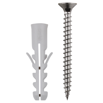 De GAMMA Basisplug nylon Ø 8mm met schroef RVS, de meest gebruikte plug voor toepassing in massieve bouwmaterialen, zoals beton en massieve steen. U koopt de basisplug per 8 stuks, inclusief universeelschroef vz rvs van 5x50mm . De basisplug is 40mm lang en heeft diepe vertanding .Zo bevestigt u met deze plug en universeelschroef vz rvs middelzware materialen aan muren en wanden, bijvoorbeeld schilderijen, plinten en legplanken. De universeelschroef vz rvs roest niet waardoor u deze ook buiten of in natte ruimtes, zoals de badkamer, kunt toepassen. De universeelschroef vz rvs is 5mm dik en 50mm lang. Voorboren met een boormaat van 8mm benodigd. Dan zorgt u voor de meest stevige bevestiging. De verpakking bevat in totaal 8 basispluggen van 8mm dikte met bijbehorende universeelschroef vz rvs
