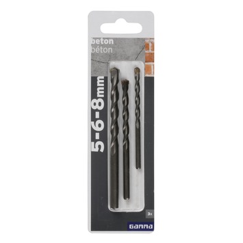 De Gamma betonborenset is uitermate geschikt om te boren in harde steensoorten en (keramische) tegels. De set bestaat uit een drietal boren in de maten 5, 6 en 8mm. De boren beschikken over een stompe, hardmetalen (beitel)punt. De betonboren kunnen in een (accu)klopboormachine gebruikt worden.