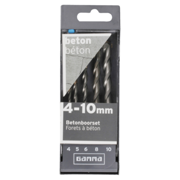 De Gamma betonborenset is uitermate geschikt om te boren in harde steensoorten. De set bestaat uit een vijftal boren in de maten 4, 5, 6, 8 en 10mm. De boren beschikken over een stompe, hardmetalen (beitel)punt. De betonboren kunnen voor boren in beton in een (accu)boorhamer gebruikt worden en voor zachtere steensoorten ook in een (accu)klopboor