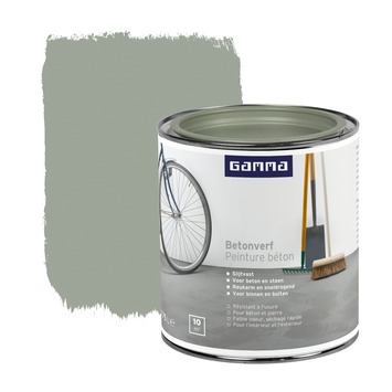 GAMMA betonverf grijs 750 ml is een goed hechtende en slijtvaste, matte betonverf die u zowel voor binnen als buiten kunt gebruiken. De verf is met een of roller gemakkelijk aan te brengen op vloeren en wanden van beton of andere steenachtige materialen zoals balkons, trappen en trottoirtegels. Dit product is op waterbasis en daarom geurarm en sneldrogend. Na 6 uur is het overschilderbaar met een volgende verflaag. Naast de standaard beschikbare kleuren is deze verf in meer dan 30.000 verschillende kleuren te verkrijgen bij onze verfmengbalie in de GAMMA bouwmarkt. Eén blik van 750 ml volstaat voor het schilderen van een oppervlakte van 10 m2.