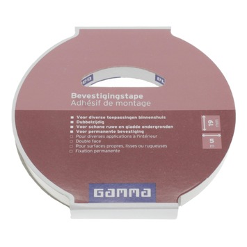 Deze dubbelzijdige GAMMA bevestigingstape 19 mm 5 meter kan je gebruiken voor diverse toepassingen binnenshuis. Geschikt voor schone gladde en ruwe ondergronden.
