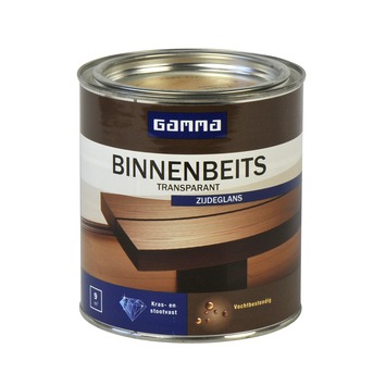 GAMMA binnenbeits transparant licht eiken zijdeglans 750 ml is een zijdeglans beits voor het kleuren en beschermen van hout binnenshuis. Het is een transparant product waardoor de houtnerf zichtbaar blijft. Dit product is op waterbasis wat als voordeel heeft dat het snel droogt en geurarm is. Het is al na 4 uur overschilderbaar met een eventuele volgende beitslaag. Eén blik van 750 ml volstaat voor het schilderen van een oppervlakte van 9 m2. Het product is beschikbaar in diverse kant en klare kleuren.