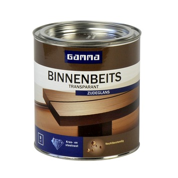 GAMMA binnenbeits transparant noten zijdeglans 750 ml is een zijdeglans beits voor het kleuren en beschermen van hout binnenshuis. Het is een transparant product waardoor de houtnerf zichtbaar blijft. Dit product is op waterbasis wat als voordeel heeft dat het snel droogt en geurarm is. Het is al na 4 uur overschilderbaar met een eventuele volgende beitslaag. Eén blik van 750 ml volstaat voor het schilderen van een oppervlakte van 9 m2. Het product is beschikbaar in diverse kant en klare kleuren.