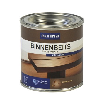 GAMMA binnenbeits transparant palissander zijdeglans 250 ml is een zijdeglans beits voor het kleuren en beschermen van hout binnenshuis. Het is een transparant product waardoor de houtnerf zichtbaar blijft. Dit product is op waterbasis wat als voordeel heeft dat het snel droogt en geurarm is. Het is al na 4 uur overschilderbaar met een eventuele volgende beitslaag. Eén blik van 250 ml volstaat voor het schilderen van een oppervlakte van 3 m2. Het product is beschikbaar in diverse kant en klare kleuren.