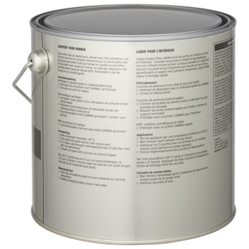 Deze GAMMA binnenlak is een verf op waterbasis. Verf op waterbasis is de beste keus voor binnenshuis. Het is geurarm en blijft langer mooi van kleur. Deze kras- en stootvaste verf is geschikt voor hout, en in combinatie met de daarvoor geschikte grondverf, ook op metaal en kunststoffen. Voor een optimaal resultaat van de GAMMA binnenlak behandel je de ondergrond eerst met de GAMMA grondverf voor binnen. Een uur na het aanbrengen van de verf is deze reeds stofdroog, na 20 uur kan je de volgende laag aanbrengen. De lak is te gebruiken als afwerking van nieuw onbehandelde delen, maar ook op bestaand schilderwerk of om meubels een nieuwe uitstraling te geven. De binnenlak is eenvoudig aan te brengen met een kwast of lakroller voor verf op waterbasis.