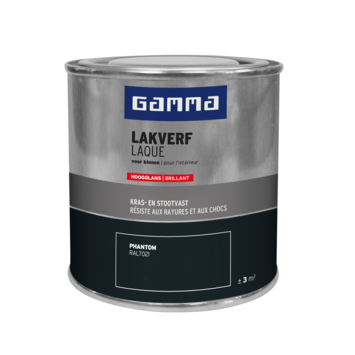 De GAMMA binnenlak hoogglans RAL 7021 phantom 250 ml is geschikt voor het schilderen van onder andere deuren, kozijnen en meubels binnenshuis. Deze kras- en stootvaste lak beschermt oppervlakken goed en geeft ze een strakke hoogglans afwerking. De lak is op waterbasis, waardoor hij geurarm is en minder snel vergeelt. Je kunt hem direct op hout aanbrengen, en in combinatie met een geschikte grondverf ook op metaal en kunststof. De verf is stofdroog na 1 uur en overschilderbaar na 12 uur.