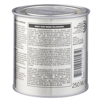 Voor een optimaal resultaat van de GAMMA binnenlak behandel je de ondergrond eerst met de GAMMA grondverf voor binnen. Het blik heeft een inhoud van 250 milliliter, dit is voldoende voor een oppervlakte van ongeveer 3 m². Een uur na het aanbrengen van de verf is deze reeds stofdroog, na 20 uur kan je de volgende laag aanbrengen. Verwerk de verf bij temperaturen tussen de 8 en 25°C.