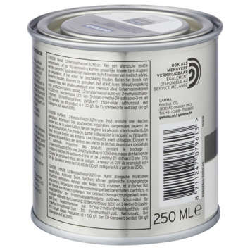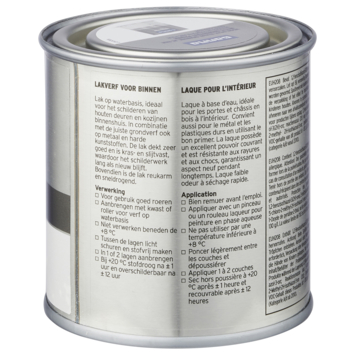Voor een optimaal resultaat van de GAMMA binnenlak behandel je de ondergrond eerst met de GAMMA grondverf voor binnen. Het blik heeft een inhoud van 250 milliliter, dit is voldoende voor een oppervlakte van ongeveer 3 m². Een uur na het aanbrengen van de verf is deze reeds stofdroog, na 20 uur kan je de volgende laag aanbrengen. Verwerk de verf bij temperaturen tussen de 8 en 25°C.