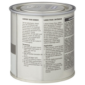 De lak is te gebruiken als afwerking van nieuw onbehandelde delen, maar ook op bestaand schilderwerk of om meubels een nieuwe uitstraling te geven. De binnenlak is eenvoudig aan te brengen met een kwast of lakroller voor verf op waterbasis. Deze koop je bij de dichtstbijzijnde GAMMA of via de webshop.