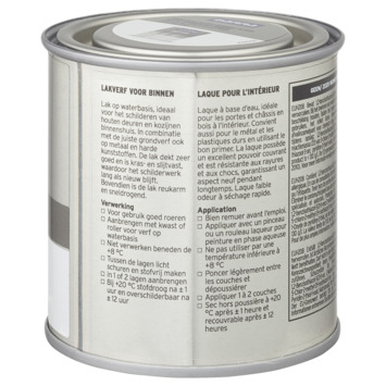Voor een optimaal resultaat van de GAMMA binnenlak behandel je de ondergrond eerst met de GAMMA grondverf voor binnen. Het blik heeft een inhoud van 250 milliliter, dit is voldoende voor een oppervlakte van ongeveer 3 m². Een uur na het aanbrengen van de verf is deze reeds stofdroog, na 20 uur kan je de volgende laag aanbrengen. Verwerk de verf bij temperaturen tussen de 8 en 25°C.