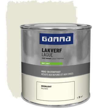 De GAMMA binnenlak mat RAL 9010 moonlight 250 ml is geschikt voor het schilderen van onder andere deuren, kozijnen en meubels binnenshuis. Deze kras- en stootvaste lak beschermt oppervlakken goed en geeft ze een strakke matte afwerking. De lak is op waterbasis, waardoor hij geurarm is en minder snel vergeelt. Je kunt hem direct op hout aanbrengen, en in combinatie met een geschikte grondverf ook op metaal en kunststof. De verf is stofdroog na 1 uur en overschilderbaar na 12 uur. Met een blik van 250 ml kun je ongeveer 3 m² schilderen. Voor het beste resultaat verwerk je de lak bij temperaturen tussen 8 en 25°C. Je brengt de verf eenvoudig aan met een kwast of lakroller voor verf op waterbasis. GAMMA heeft deze binnenlak in 14 kleuren en 3 glansgraden: hoogglans, zijdeglans en mat. Zit jouw kleur er niet bij? Dan kan een verfspecialist een kleur op maat mengen in de bouwmarkt.