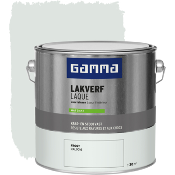 De GAMMA binnenlak mat RAL 9016 frost 2,5 liter is geschikt voor het schilderen van onder andere deuren, kozijnen en meubels binnenshuis. Deze kras- en stootvaste lak beschermt oppervlakken goed en geeft ze een strakke matte afwerking. De lak is op waterbasis, waardoor hij geurarm is en minder snel vergeelt. Je kunt hem direct op hout aanbrengen, en in combinatie met een geschikte grondverf ook op metaal en kunststof. De verf is stofdroog na 1 uur en overschilderbaar na 12 uur.