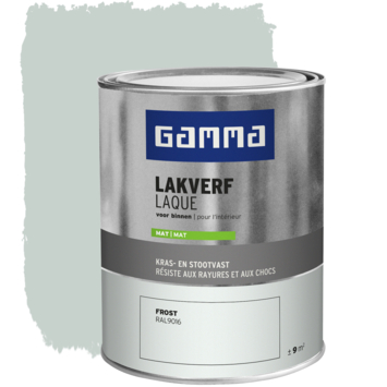 De GAMMA binnenlak mat RAL 9016 frost 750 ml is geschikt voor het schilderen van onder andere deuren, kozijnen en meubels binnenshuis. Deze kras- en stootvaste lak beschermt oppervlakken goed en geeft ze een strakke matte afwerking. De lak is op waterbasis, waardoor hij geurarm is en minder snel vergeelt. Je kunt hem direct op hout aanbrengen, en in combinatie met een geschikte grondverf ook op metaal en kunststof. De verf is stofdroog na 1 uur en overschilderbaar na 12 uur.