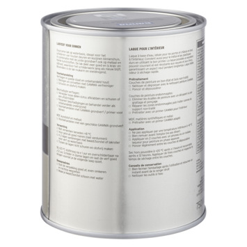Voor een optimaal resultaat van de GAMMA binnenlak behandel je de ondergrond eerst met de GAMMA grondverf. Het blik heeft een inhoud van 750 milliliter, dit is voldoende voor een oppervlakte van ongeveer 9 m². Een uur na het aanbrengen van de verf is deze reeds stofdroog, na 12 uur kan je de volgende laag aanbrengen. Verwerk de verf bij temperaturen tussen de 8 en 25°C.