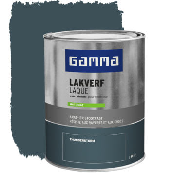 De GAMMA binnenlak mat thunderstorm 750 ml is een verf op waterbasis. Deze verf is geurarm en blijft langer mooi van kleur. De lak is kras- en stootvast en geschikt voor hout. In combinatie met een geschikte grondverf hecht hij ook goed op metaal en kunststof. Gebruik deze binnenlak voor het afwerken van onder andere deuren, kozijnen, meubels of bestaand schilderwerk. Het blik bevat 750 ml verf, genoeg om een oppervlak van ongeveer 9 m² te schilderen. De verf is stofdroog na 1 uur en overschilderbaar na 12 uur.
