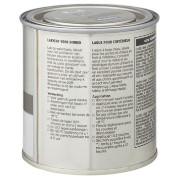 De lak is te gebruiken als afwerking van nieuw onbehandelde delen, maar ook op bestaand schilderwerk of om meubels een nieuwe uitstraling te geven. De binnenlak is eenvoudig aan te brengen met een kwast of lakroller voor verf op waterbasis. Deze koop je bij de dichtstbijzijnde GAMMA of via de webshop.