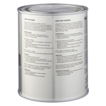 Voor een optimaal resultaat van de GAMMA binnenlak behandel je de ondergrond eerst met de GAMMA grondverf voor binnen. Het blik heeft een inhoud van 750 milliliter, dit is voldoende voor een oppervlakte van ongeveer 9 m². Een uur na het aanbrengen van de verf is deze reeds stofdroog, na 20 uur kan je de volgende laag aanbrengen. Verwerk de verf bij temperaturen tussen de 8 en 25°C.