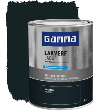 De GAMMA binnenlak zijdeglans RAL 7021 phantom 750 ml is een verf op waterbasis. Deze verf is geurarm en blijft langer mooi van kleur. De lak is kras- en stootvast en geschikt voor hout. In combinatie met een geschikte grondverf hecht hij ook goed op metaal en kunststof. Gebruik deze binnenlak voor het afwerken van onder andere deuren, kozijnen, meubels of bestaand schilderwerk. Het blik bevat 750 ml verf, genoeg om een oppervlak van ongeveer 9 m² te schilderen. De verf is stofdroog na 1 uur en overschilderbaar na 12 uur.