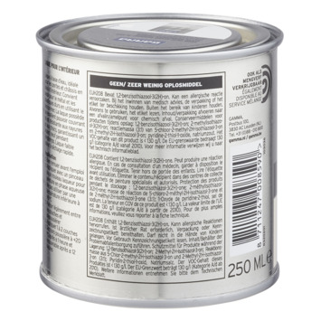 Voor een optimaal resultaat van de GAMMA binnenlak behandel je de ondergrond eerst met de GAMMA grondverf voor binnen. Het blik heeft een inhoud van 250 milliliter, dit is voldoende voor een oppervlakte van ongeveer 3 m². Een uur na het aanbrengen van de verf is deze reeds stofdroog, na 20 uur kan je de volgende laag aanbrengen. Verwerk de verf bij temperaturen tussen de 8 en 25°C.