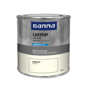 De GAMMA binnenlak zijdeglans RAL 9010 moonlight 250 ml is geschikt voor het schilderen van onder andere deuren, kozijnen en meubels binnenshuis. Deze kras- en stootvaste lak beschermt oppervlakken goed en geeft ze een strakke zijdeglans afwerking. De lak is op waterbasis, waardoor hij geurarm is en minder snel vergeelt. Je kunt hem direct op hout aanbrengen, en in combinatie met een geschikte grondverf ook op metaal en kunststof. De verf is stofdroog na 1 uur en overschilderbaar na 12 uur.