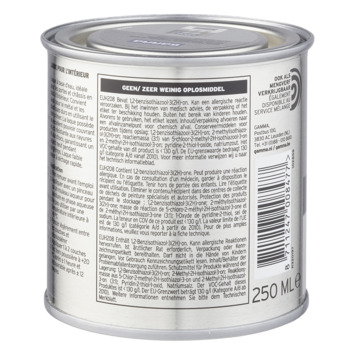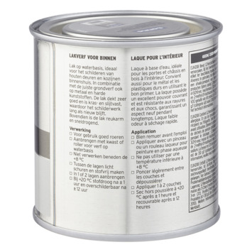 Voor een optimaal resultaat van de GAMMA binnenlak behandel je de ondergrond eerst met de GAMMA grondverf voor binnen. Het blik heeft een inhoud van 250 milliliter, dit is voldoende voor een oppervlakte van ongeveer 3 m². Een uur na het aanbrengen van de verf is deze reeds stofdroog, na 20 uur kan je de volgende laag aanbrengen. Verwerk de verf bij temperaturen tussen de 8 en 25°C.