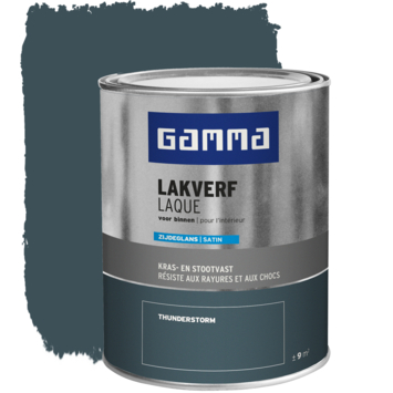 De GAMMA binnenlak zijdeglans thunderstorm 750 ml is geschikt voor het schilderen van onder andere deuren, kozijnen en meubels binnenshuis. Deze kras- en stootvaste lak beschermt oppervlakken goed en geeft ze een strakke zijdeglans afwerking. De lak is op waterbasis, waardoor hij geurarm is en minder snel vergeelt. Je kunt hem direct op hout aanbrengen, en in combinatie met een geschikte grondverf ook op metaal en kunststof. De verf is stofdroog na 1 uur en overschilderbaar na 12 uur.