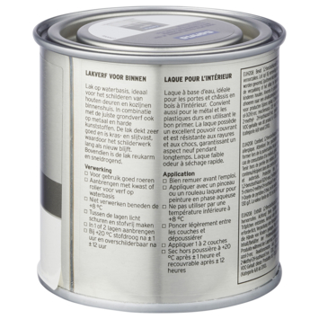 Voor een optimaal resultaat van de GAMMA binnenlak behandel je de ondergrond eerst met de GAMMA grondverf voor binnen. Het blik heeft een inhoud van 250 milliliter, dit is voldoende voor een oppervlakte van ongeveer 3 m². Een uur na het aanbrengen van de verf is deze reeds stofdroog, na 20 uur kan je de volgende laag aanbrengen. Verwerk de verf bij temperaturen tussen de 8 en 25°C.
