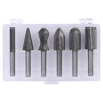 Met de 6-delige Gamma boorraspset haalt u een set raspen in huis voor op de boormachine waarmee u hout en aluminium kunt bewerken met een boormachine. De set bestaat uit 6 verschillende vormen met een diameter van 6mm of 12mm. Booraansluiting: 6mm.