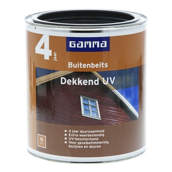 GAMMA buitenbeits dekkend UV antraciet 750 ml is ideaal voor het langdurig beschermen van hoogwaardig hout zoals daklijsten en gevelbetimmeringen. Deze glanzende, dekkende beits is een oplosmiddel houdend product en beschikbaar in vele populaire kleuren. Het product is weersbestendig, waterafstotend, UV-bestendig en vochtregulerend. Het rendement van één blik van 750 ml is ongeveer 11 m2. Op onbehandeld hout is het aan te bevelen om 3 lagen aan te brengen, op hout in goede staat volstaan 2 lagen. Gebruik van grondverf is niet nodig.