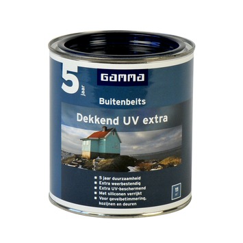 GAMMA buitenbeits dekkend UV extra gelders blauw 750 ml is ideaal voor het langdurig beschermen van hoogwaardig hout zoals buitendeuren en buitenkozijnen. Door de toevoeging van siliconen kan een duurzaamheid van 5 jaar worden gegarandeerd. Deze glanzende beits is een oplosmiddel houdend product en beschikbaar in diverse populaire dekkende en transparante kleuren. Het product is weersbestendig, waterafstotend, UV-bestendig en vochtregulerend. Het rendement van één blik van 750 ml is ongeveer 11 m2. Op onbehandeld hout is het aan te bevelen om 3 lagen aan te brengen, op hout in goede staat volstaan 2 lagen. Gebruik van grondverf is niet nodig.