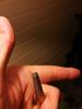 Stuk gereedschap ziet er degelijk uit, op de punt na. Deze zat niet in het midden van het gereedschap, maar al, valt mee te werken. Helaas verdween de punt ook direct toen ik het gereedschap voor zijn doel wilde gebruiken. Ik zet de punt op het ijzer, ik geef een (niet eens harde) mep op de achterkant, geen resultaat? In plaats van een putje in het ijzer een platte punt op de centerpunt.