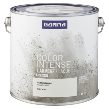 GAMMA Color Intense is een kleurconcept voor binnen schilderwerk van hoge kwaliteit en diepe kleurkracht. Deze GAMMA color intense binnenlak mat 2,5 L RAL 9010 is een verf op waterbasis. Verf op waterbasis is de beste keus voor binnenshuis. Het is geurarm en blijft langer mooi van kleur. Deze verf is geschikt voor hout, en in combinatie met de daarvoor geschikte grondverf, ook op metaal en kunststoffen. Door gebruik van de beste pigmenten in deze verf, behoudt je de diepe en intense kleurkracht. De lak op waterbasis vloeit uitstekend, en heeft een extra goede dekking.