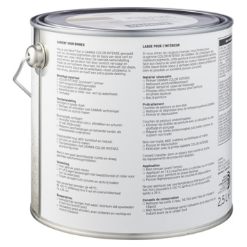 Voor een optimaal resultaat van deze GAMMA Color Intens binnenlak behandel je de ondergrond eerst met de GAMMA Color Intens grondverf. Het blik heeft een inhoud van 2,5 liter, dit is voldoende voor een oppervlakte van ongeveer 25 m². Drie uur na het aanbrengen van de verf is deze reeds stofdroog, na 24 uur kan je de volgende laag aanbrengen. Verwerk de verf bij temperaturen tussen de 8 en 25°C.
