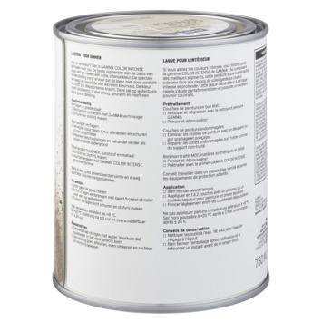 Voor een optimaal resultaat van deze GAMMA Color Intens binnenlak behandel je de ondergrond eerst met de GAMMA Color Intens grondverf. Het blik heeft een inhoud van 750 milliliter, dit is voldoende voor een oppervlakte van ongeveer 7,5 m². Drie uur na het aanbrengen van de verf is deze reeds stofdroog, na 24 uur kan je de volgende laag aanbrengen. Verwerk de verf bij temperaturen tussen de 8 en 25°C.