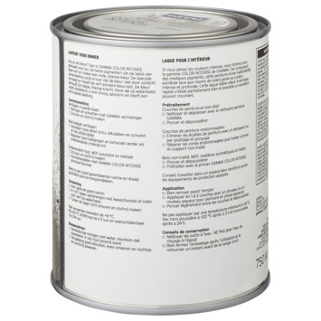 Voor een optimaal resultaat van deze GAMMA Color Intens binnenlak behandel je de ondergrond eerst met de GAMMA Color Intens grondverf. Het blik heeft een inhoud van 750 milliliter, dit is voldoende voor een oppervlakte van ongeveer 7,5 m². Drie uur na het aanbrengen van de verf is deze reeds stofdroog, na 24 uur kan je de volgende laag aanbrengen. Verwerk de verf bij temperaturen tussen de 8 en 25°C.