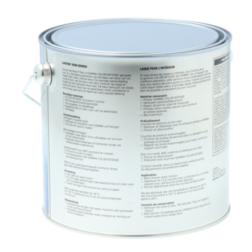 GAMMA Color Intense is een kleurconcept voor binnen schilderwerk van hoge kwaliteit en diepe kleurkracht. Deze GAMMA color intense binnenlak is een verf op waterbasis. Verf op waterbasis is de beste keus voor binnenshuis. Het is geurarm en blijft langer mooi van kleur. Deze verf is geschikt voor hout, en in combinatie met de daarvoor geschikte grondverf, ook op metaal en kunststoffen. Door gebruik van de beste pigmenten in deze verf, behoudt je de diepe en intense kleurkracht. De lak op waterbasis vloeit uitstekend, en heeft een extra goede dekking. Voor een optimaal resultaat van deze GAMMA Color Intens binnenlak behandel je de ondergrond eerst met de GAMMA Color Intens grondverf. Drie uur na het aanbrengen van de verf is deze reeds stofdroog, na 24 uur kan je de volgende laag aanbrengen. De lak is te gebruiken als afwerking van nieuw onbehandelde delen, maar ook op bestaand schilderwerk of om meubels een nieuwe uitstraling te geven. De binnenlak is eenvoudig aan te brengen met een kwast of lakroller voor verf op waterbasis.