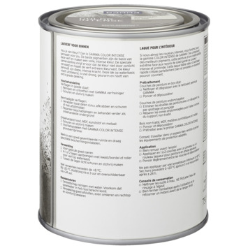 Voor een optimaal resultaat van deze GAMMA Color Intens binnenlak behandel je de ondergrond eerst met de GAMMA Color Intens grondverf. Het blik heeft een inhoud van 750 milliliter, dit is voldoende voor een oppervlakte van ongeveer 7,5 m². Drie uur na het aanbrengen van de verf is deze reeds stofdroog, na 24 uur kan je de volgende laag aanbrengen. Verwerk de verf bij temperaturen tussen de 8 en 25°C.