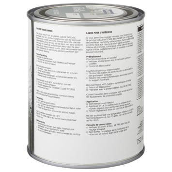Voor een optimaal resultaat van deze GAMMA Color Intens binnenlak behandel je de ondergrond eerst met de GAMMA Color Intens grondverf. Het blik heeft een inhoud van 750 milliliter, dit is voldoende voor een oppervlakte van ongeveer 7,5 m². Drie uur na het aanbrengen van de verf is deze reeds stofdroog, na 24 uur kan je de volgende laag aanbrengen. Verwerk de verf bij temperaturen tussen de 8 en 25°C.