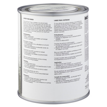 GAMMA Color Intense is een kleurconcept voor binnen schilderwerk van hoge kwaliteit en diepe kleurkracht. Deze GAMMA color intense binnenlak zijdeglans 750 ml jachtsneeuw is een verf op waterbasis. Verf op waterbasis is de beste keus voor binnenshuis. Het is geurarm en blijft langer mooi van kleur. Deze verf is geschikt voor hout, en in combinatie met de daarvoor geschikte grondverf, ook op metaal en kunststoffen. Door gebruik van de beste pigmenten in deze verf, behoudt je de diepe en intense kleurkracht. De lak op waterbasis vloeit uitstekend, en heeft een extra goede dekking.