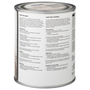 Voor een optimaal resultaat van deze GAMMA Color Intens binnenlak behandel je de ondergrond eerst met de GAMMA Color Intens grondverf. Het blik heeft een inhoud van 750 milliliter, dit is voldoende voor een oppervlakte van ongeveer 7,5 m². Drie uur na het aanbrengen van de verf is deze reeds stofdroog, na 24 uur kan je de volgende laag aanbrengen. Verwerk de verf bij temperaturen tussen de 8 en 25°C.